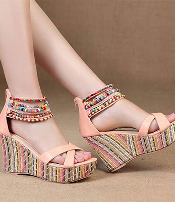 Product description | Vintage Pump,platform on the bottom,Bohemian Pearls across the top. |
